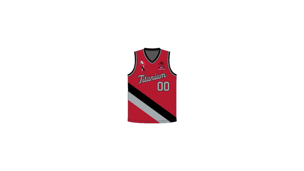 The uniform was inspired by the 90's uniforms of the Portland Trailblazers, with silver and black stripes going diagonally across the home white and road red jerseys. The name "Titanium" slanted upwards in script.